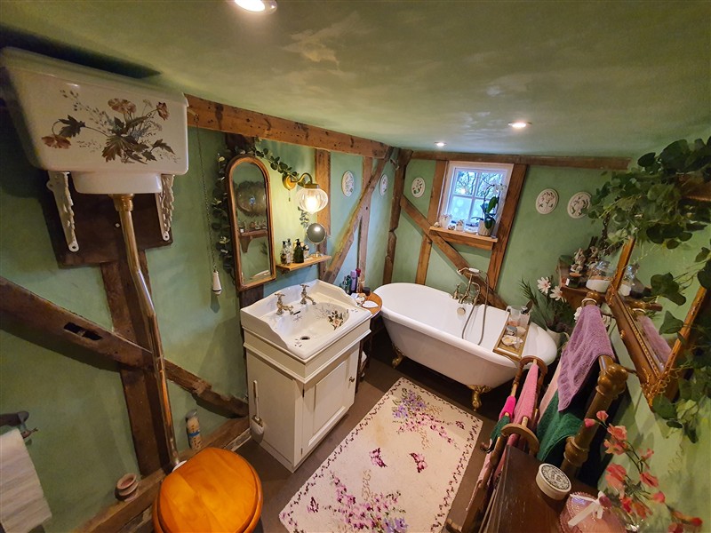 Our cottage is over 400 years old with a thatched roof, lovely old oak beams, low ceilings, a cosy fireplace, a quirky kitchen, a fantasy themed bathroom and, as I used to sell antiques and curios, it’s filled to the brim with all sorts of treasures that I’ve accumulated over the years. There’s no denying that mine is a maximalist home!